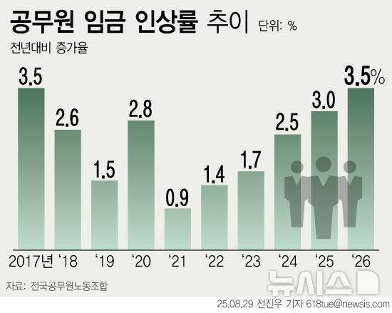 2026년 최저임금 인상률은 2.9%로 결정된 반면, 공무원 보수는 3.5% 인상되어 실질소득이 증가하는 효과를 기대할 수 있습니다.